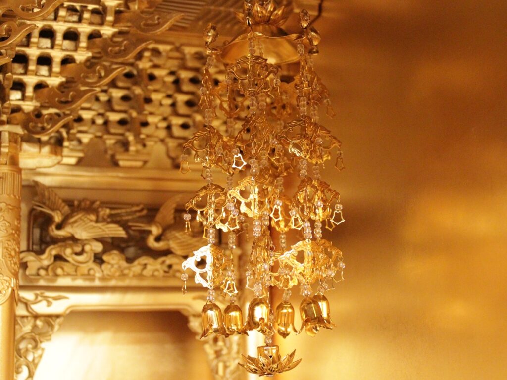 ・宮殿から仏壇内を荘厳に飾るための仏具の瓔珞1対が吊り下げられています。
