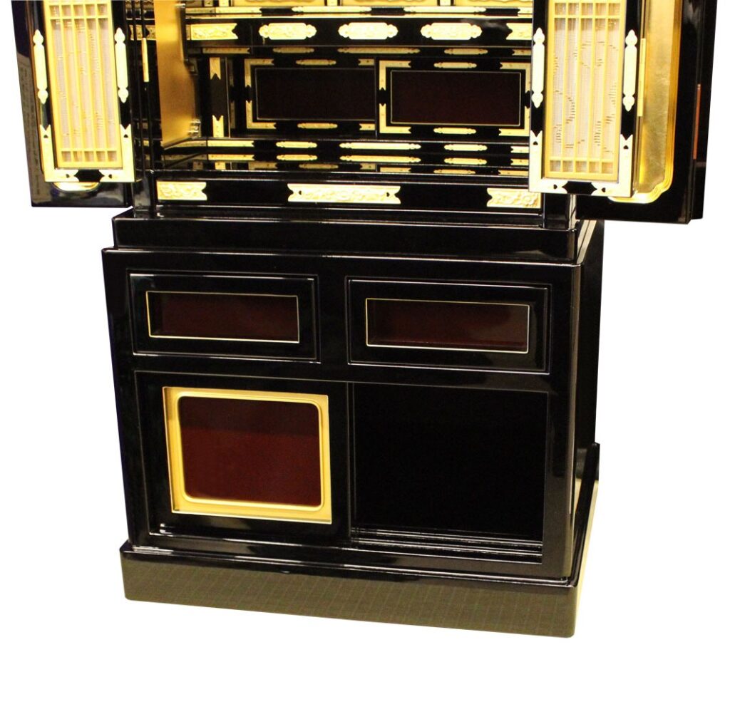 ・仏壇の下台部分に二個の引き出しと戸袋の奥に収納スペースがついています。