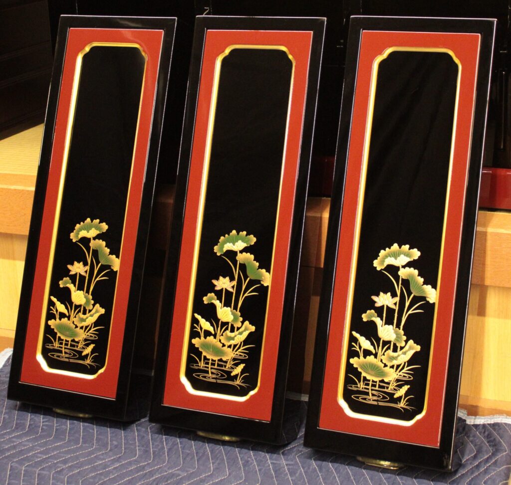 障子の表面は黒塗り仕上げで、裏面は本金箔仕上げになって一層豪華な仕上がりになっています。