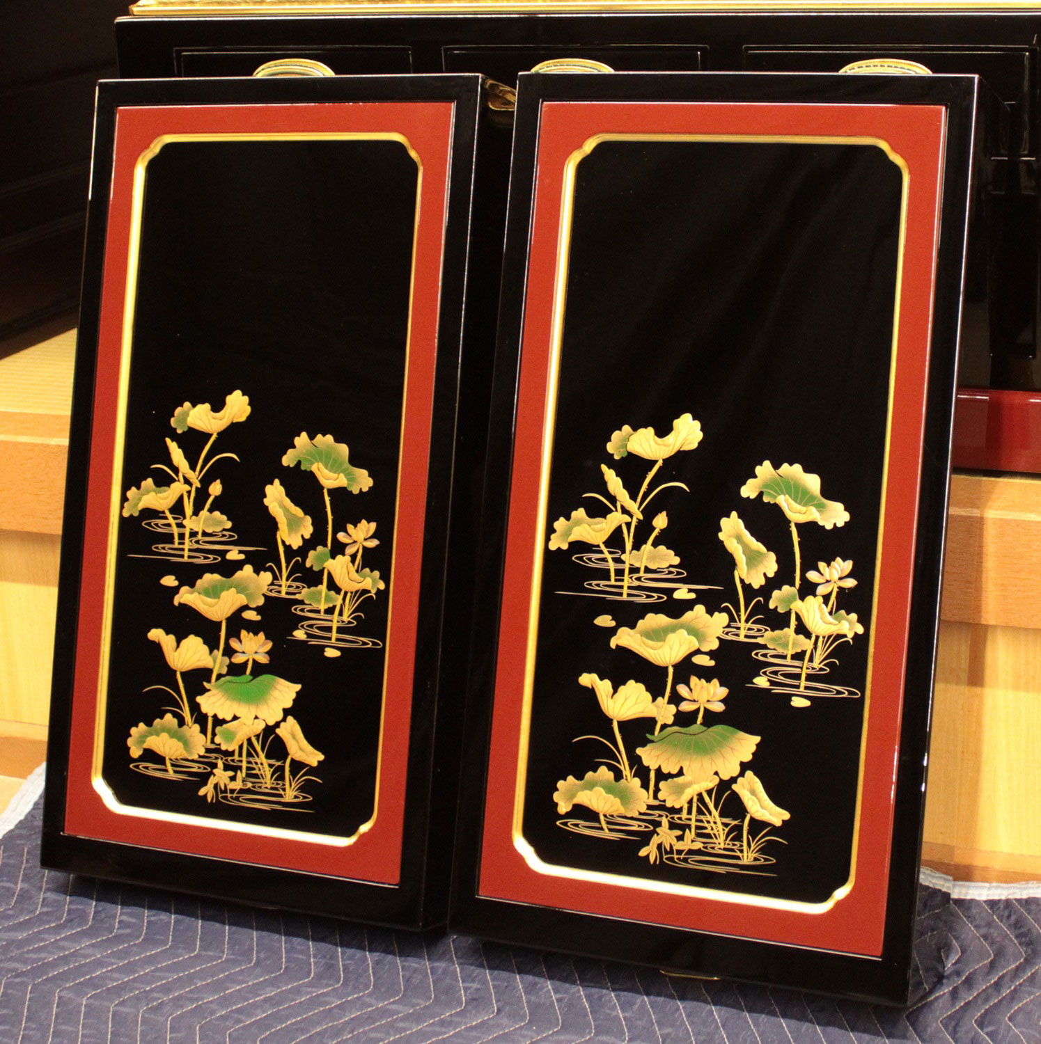 障子の表面は黒塗り仕上げで、裏面は本金箔仕上げになって一層豪華な仕上がりになっています。