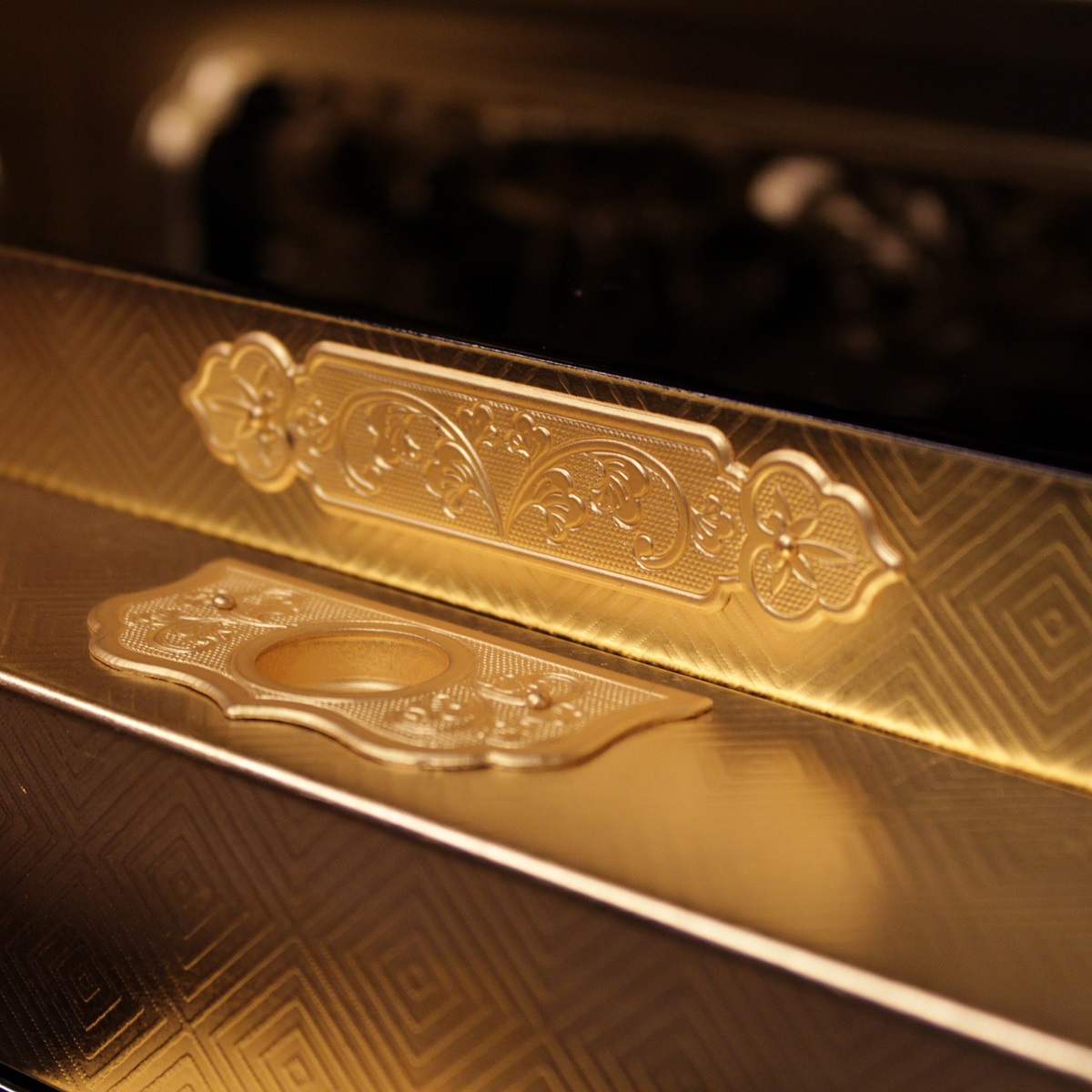 金の装飾は金沢産100%の本金箔、本金粉のみを使用しています。本金箔の輝きが豪華さを演出します。