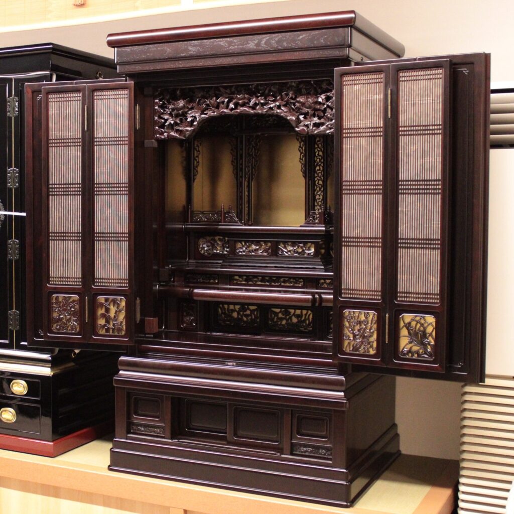 高級唐木仏壇の製造で国内ナンバー1生産地の徳島県で伝統工芸の職人により入念に製作された最高品質の国産本黒檀仏壇です。職人引退につき最後の逸品になります。