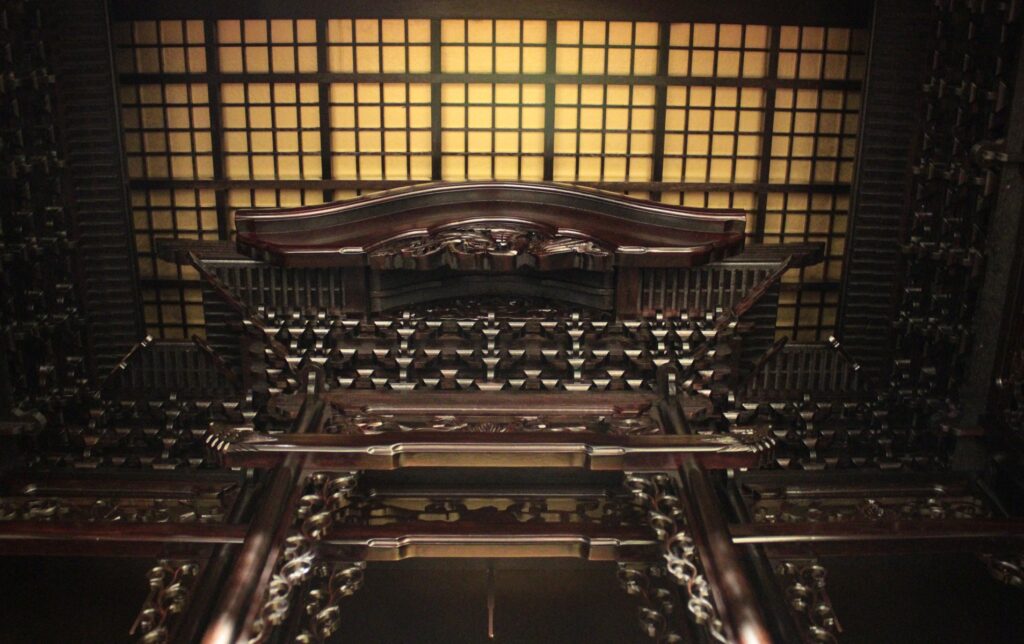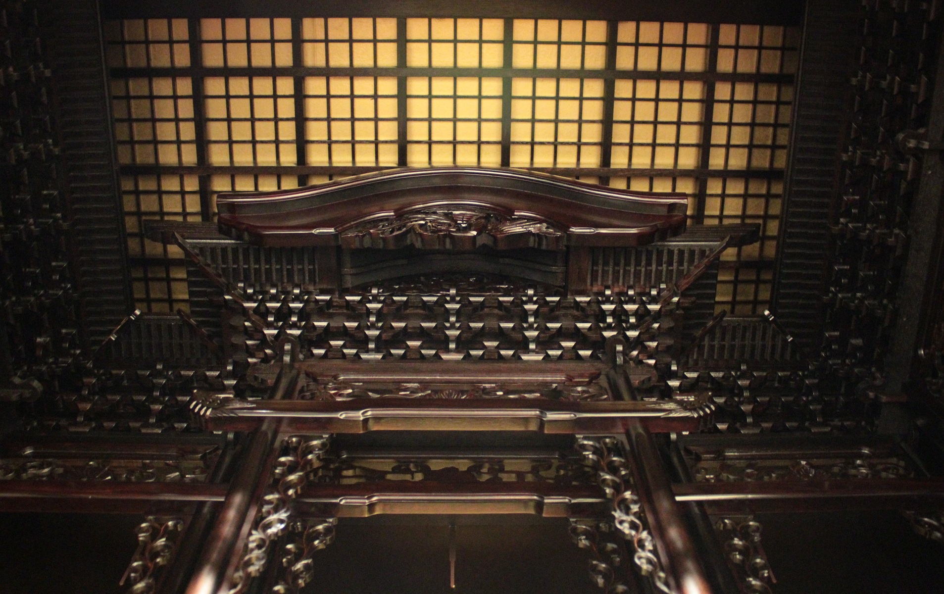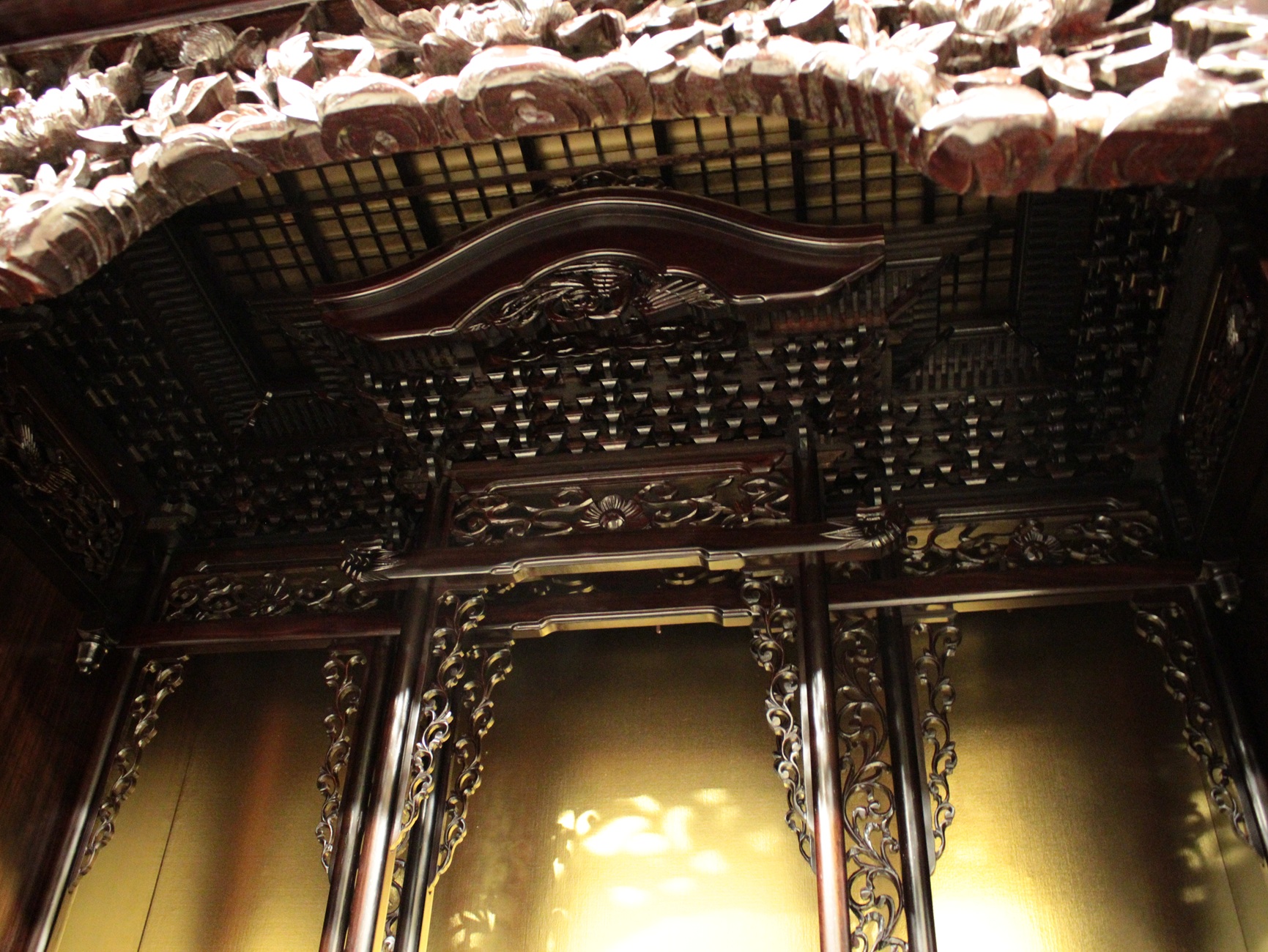 内部には豪華な彫刻や左右にまでマス組がついた宮殿が設置されています。