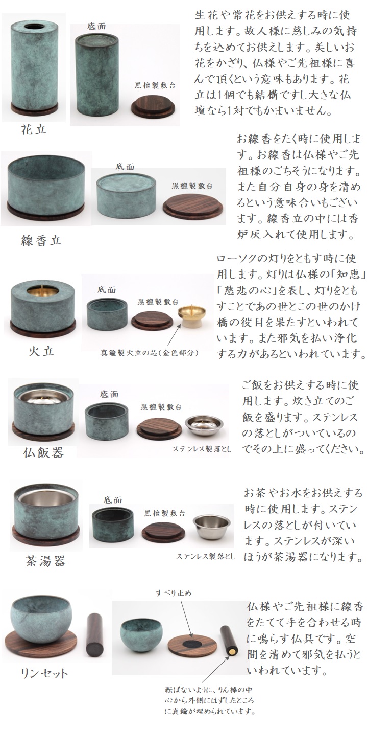 5点セット 72,800円 (花立,線香立,火立,仏飯器,茶湯器)