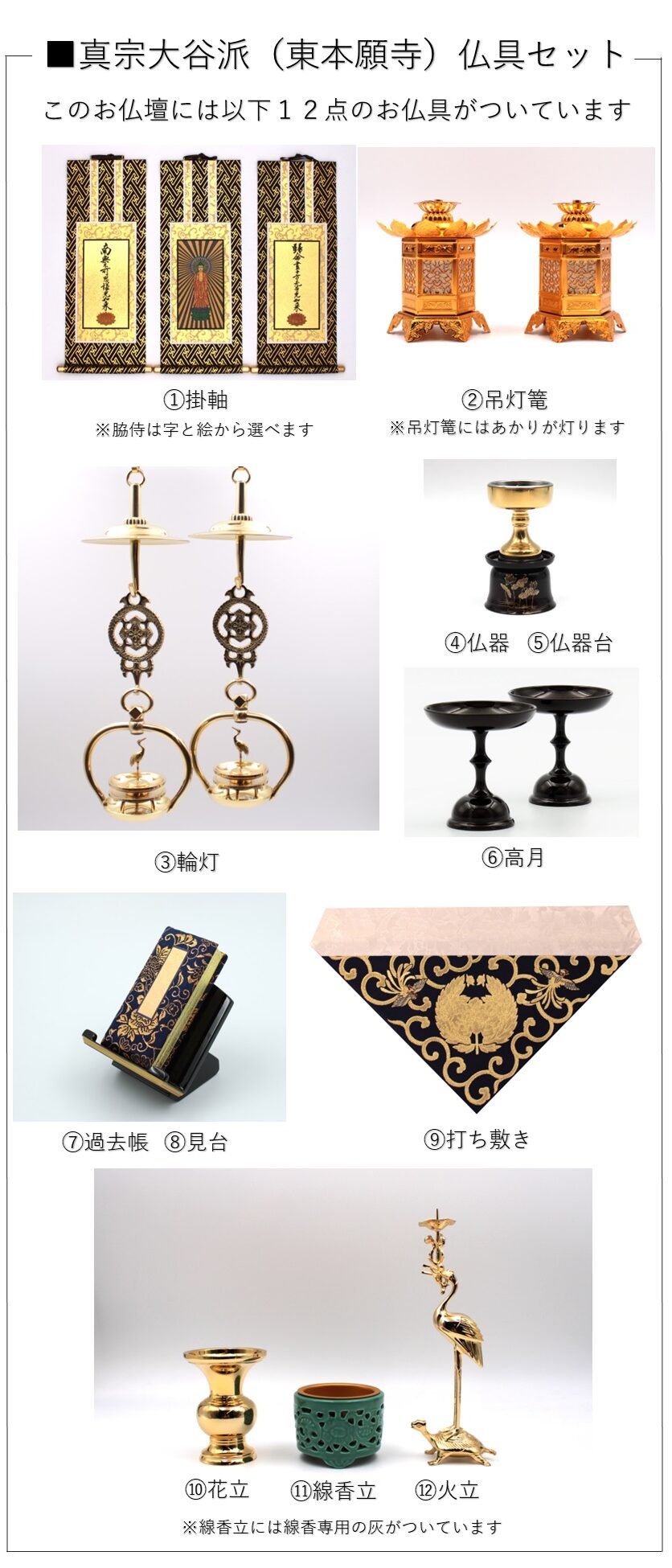 以下の付属仏具がついています。仏壇到着後すぐにおまつりすることができます。
