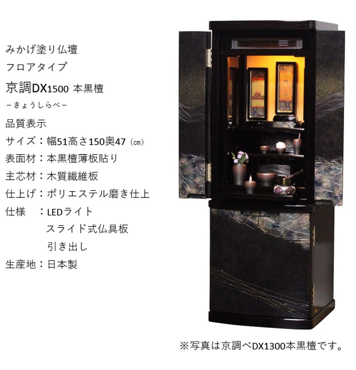 - 京調DX1500 本黒檀 みかげ塗り仏壇 高さ150㎝